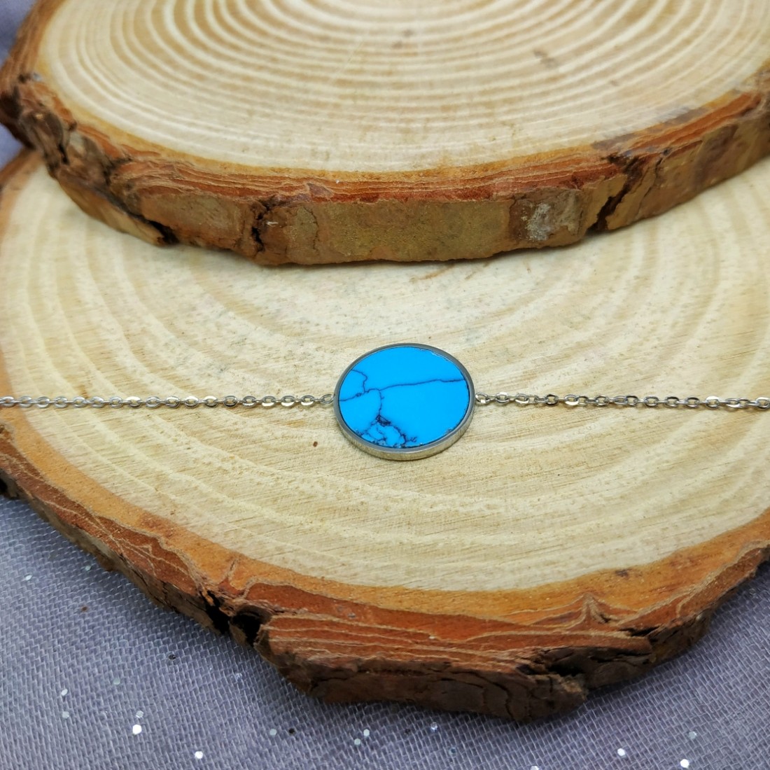 ΒΡΑΧΙΟΛΙ ΑΤΣΑΛΙ ΑΣΗΜΙ ΜΕ ΤΙΡΚΟΥΑΖ ΣΧΕΔΙΟ ΗΜΙΠΟΛΥΤΙΜΟΣ ΛΙΘΟΣ ΑΛΥΣΙΔΑΚΙ ΓΙΑ ΤΟ ΧΕΡΙ