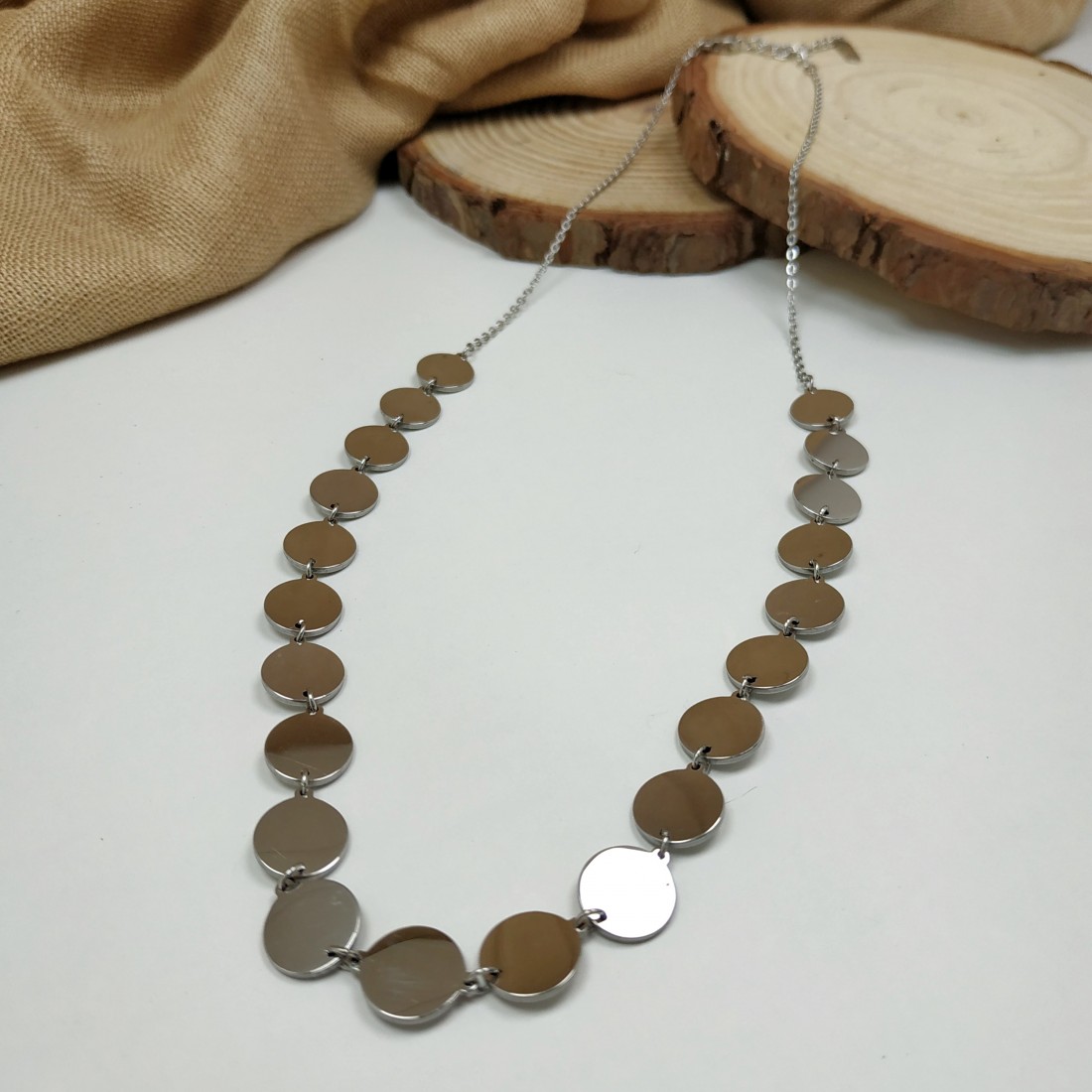 STAINLESS STEEL NECKLACE WITH COINS (SILVER COLOR)